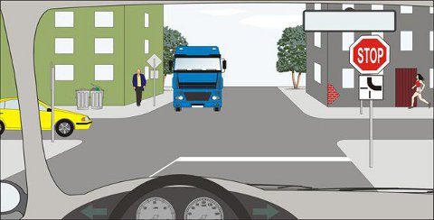 Řidič vozidla z výhledu na vyobrazené křižovatce: